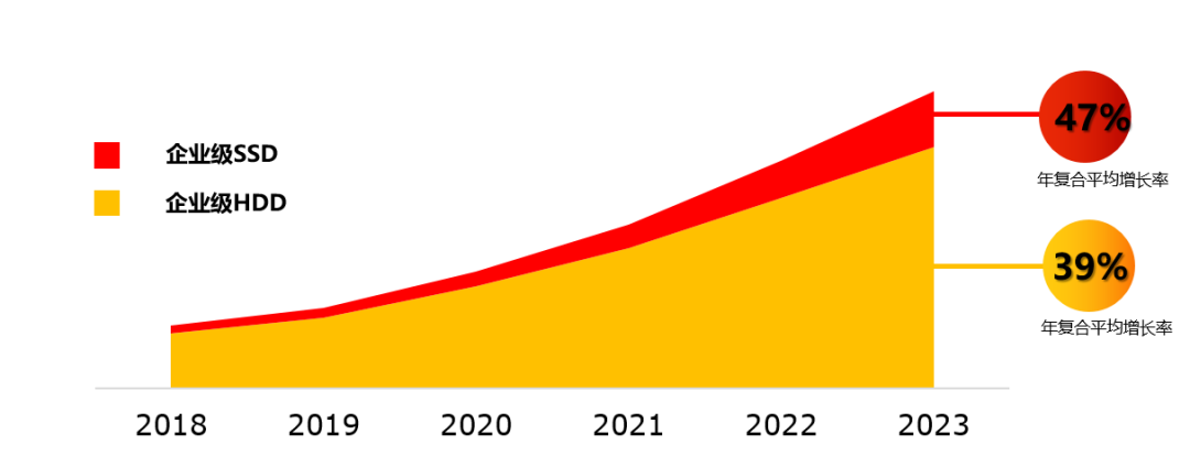我们生活在一个非比寻常的数据新时代,随着技术发展,从终端到边缘到数据中心,越来越多的数据被生产和保存,全世界产生的数据量正以指数性速度在增长。全球企业级HDD的数据量年复合增长率为39%,而企业级SSD的数据量增长更为迅猛,年复合增长率达到了47%。面对汹涌的数字化大潮和海量产生的实时数据,许多企业逐步意识到数据的价值,开始将数据作为管理精细化和业务发展的核心驱动力。